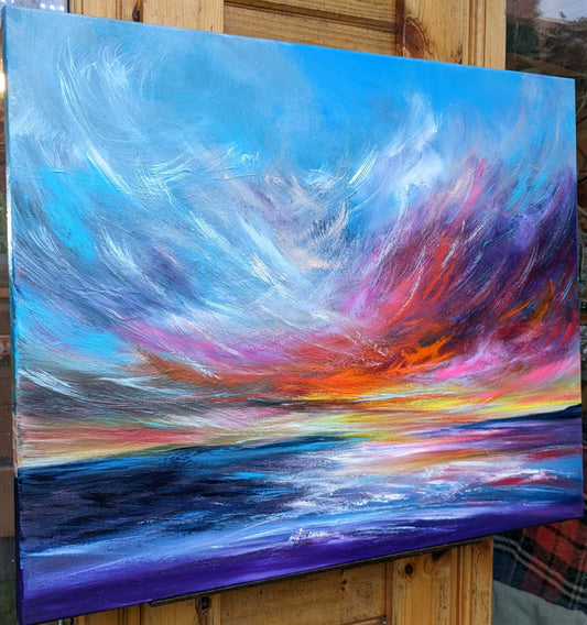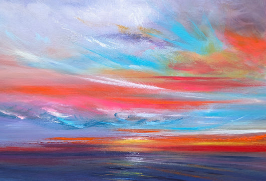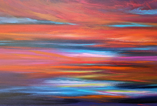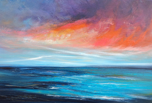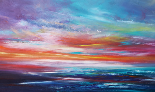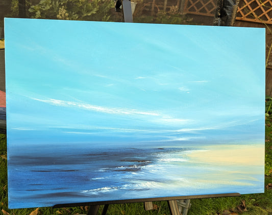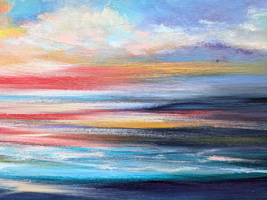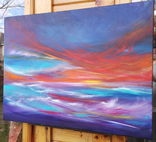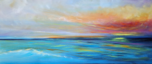 Contemplative Horizons II, 120x50cm, Large original art, sunset, sunrise, gift, blue, emotional art, seascapes, original